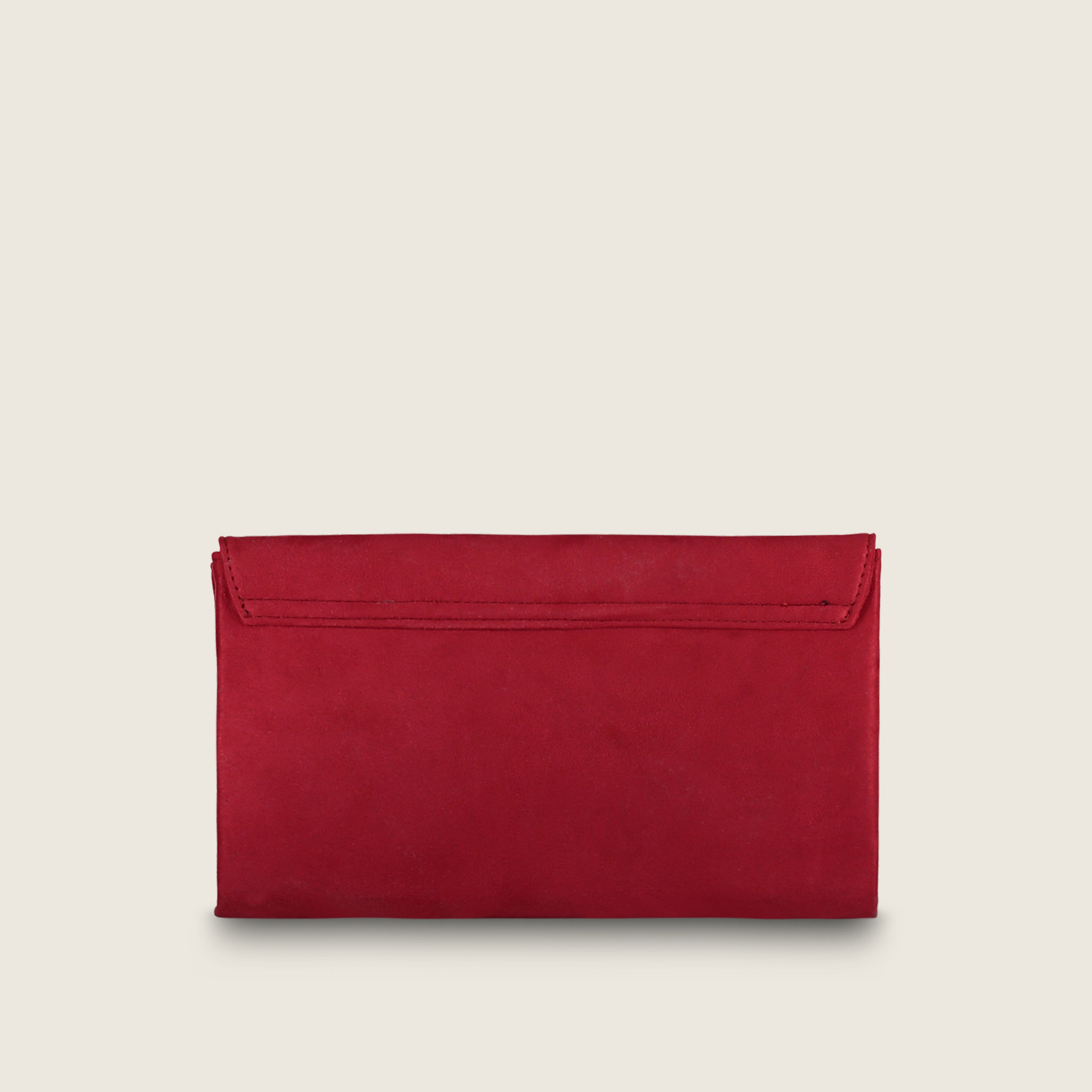 This beautiful red Carnation clutch, is an absolute bag must-have to go out with. This crossbody bag has a non adjustable shoulder chain. Thanks to the additional shoulder strap, this bag can be worn over the shoulder too.The bag has a spacious main compartment and two relatively small inner pockets, of which one with a zipper. The bag closes with a flap and two magnet snap closures. The colour of the hardware of this bag is light gold. The sizes (widht x height x depth) of this bag are 26x16x3