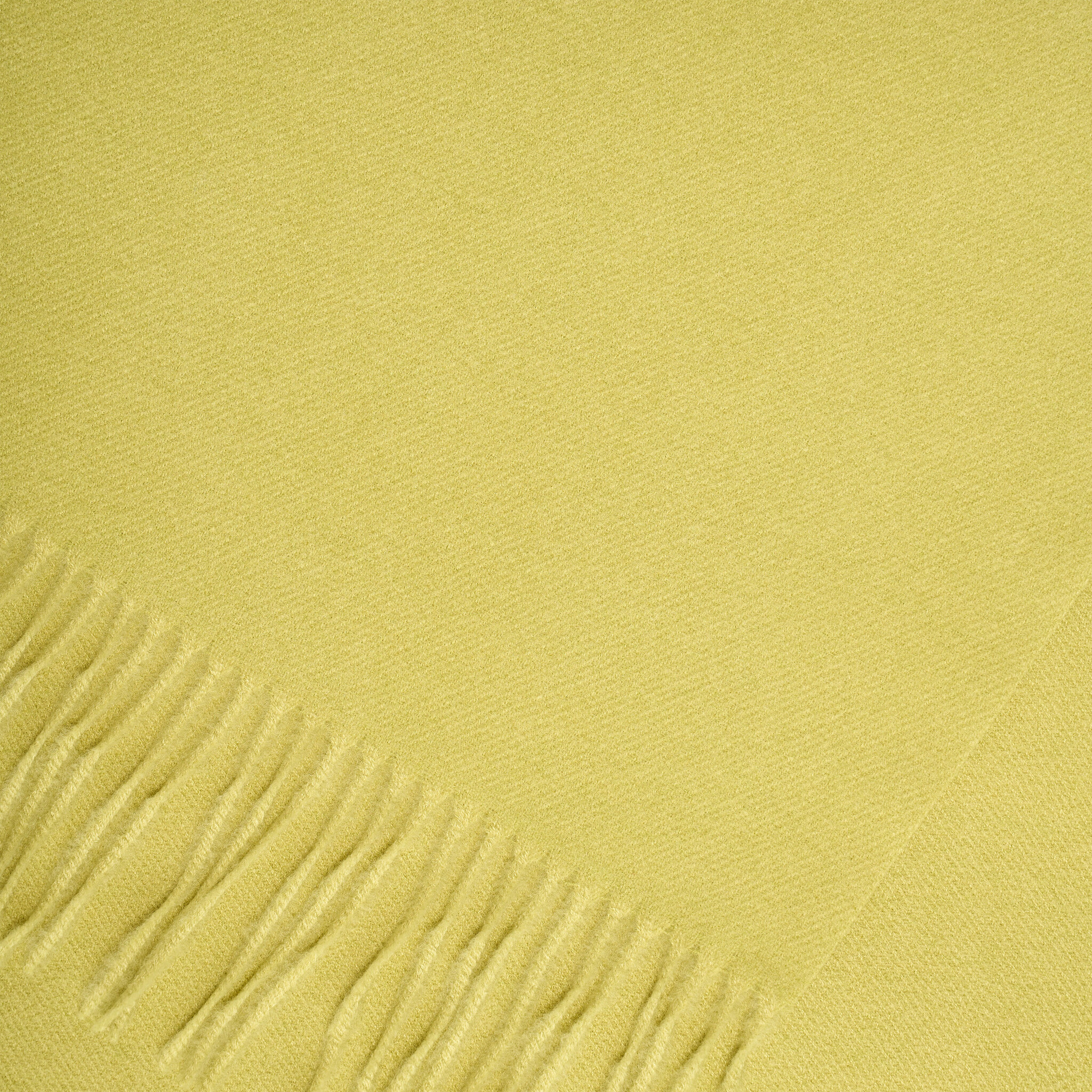 Uni moss colored shawl with fringes. The shawl is made of 15% viscose and 85% polyester and measures 67 by 180 cm.