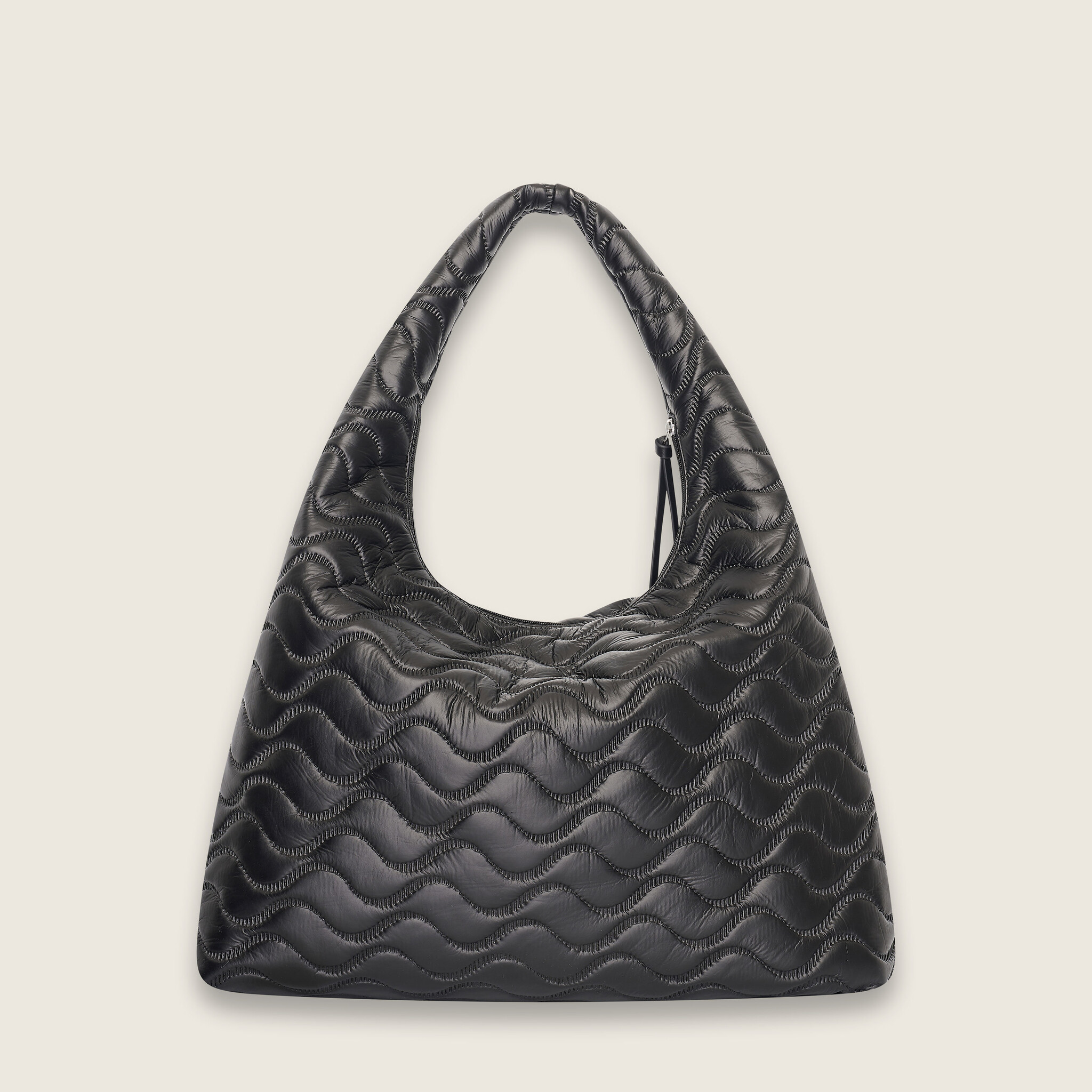 This on-trend black Waves XL hobo, meets all expectations of this season's bags.This hobo bag has a firm shoulder strap which can be worn comfortably over the shoulder. The bag has two compartments of which one closes with a zipper. The bag can be closed with a zipper. The colour of the hardware is silver. The sizes (widht x height x depth) of this bag are 50x44x14Recent articles