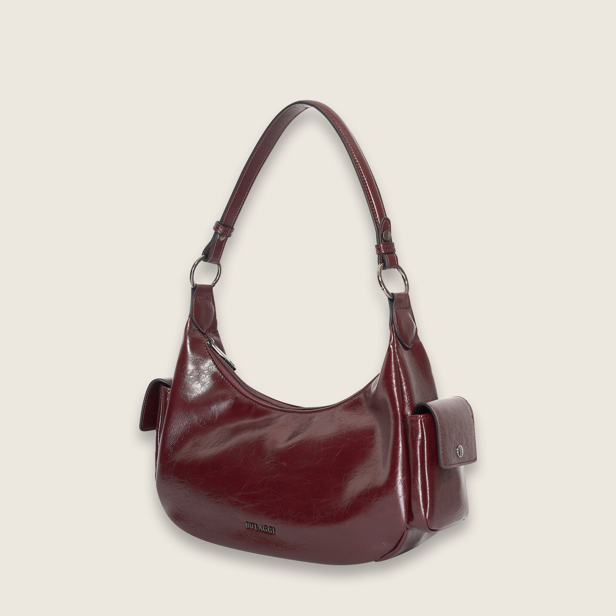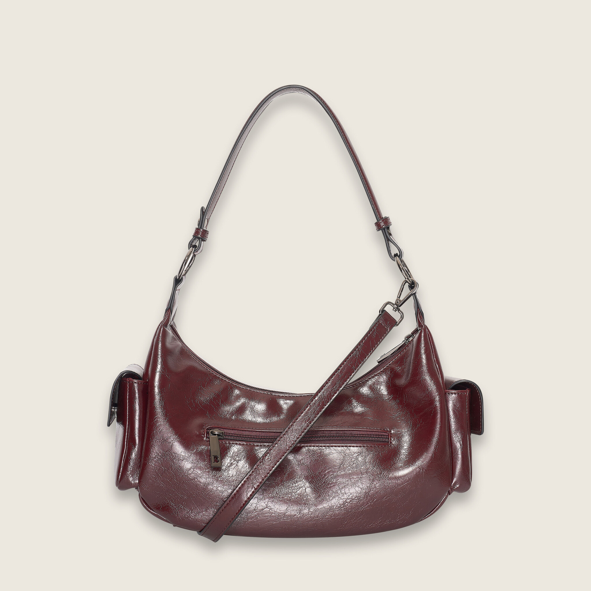 Deze stijlvolle bordeaux kleurige Crinkle hobo , is een super modern tasje waarmee je dit seizoen helemaal on-trend bent. Deze hobo schoudertas heeft dubbele schouderbanden die je zeer prettig op de schouder draagt. Door de bijgeleverde schouderband is deze tas gemakkelijk op diverse manieren te dragen. Aan de binnenkant heeft deze tas een hoofdcompartiment met twee binnenvakjes, waarvan één met rits. De tas kan worden afgesloten middels een rits. De metaalkleur is een donkere, antraciete kleur. De afmetingen (breedte / hoogte / diepte) van deze tas zijn 35x20,5x10