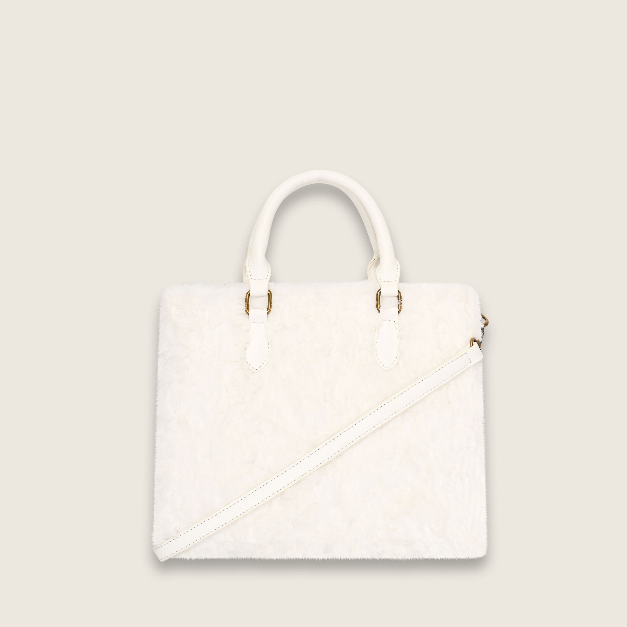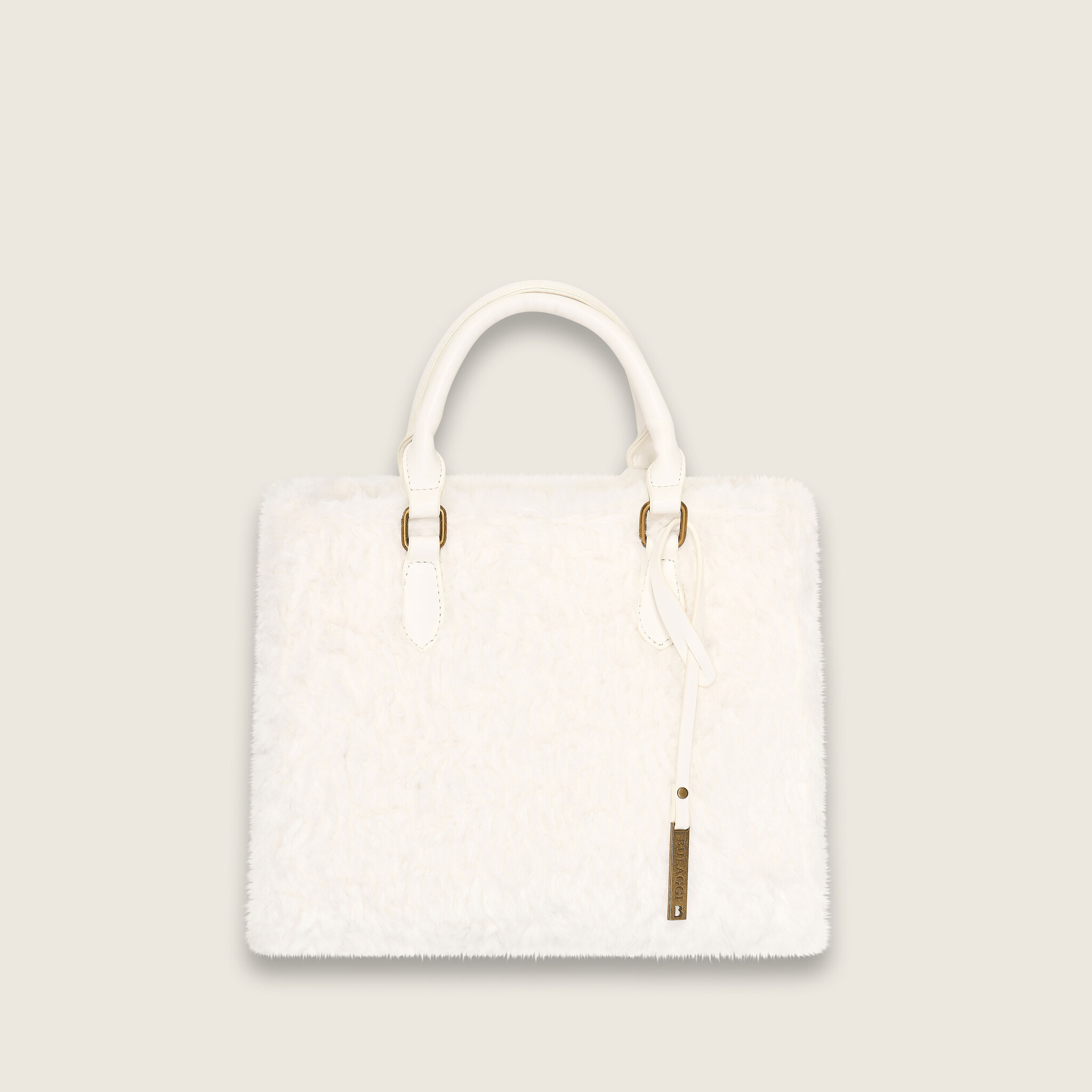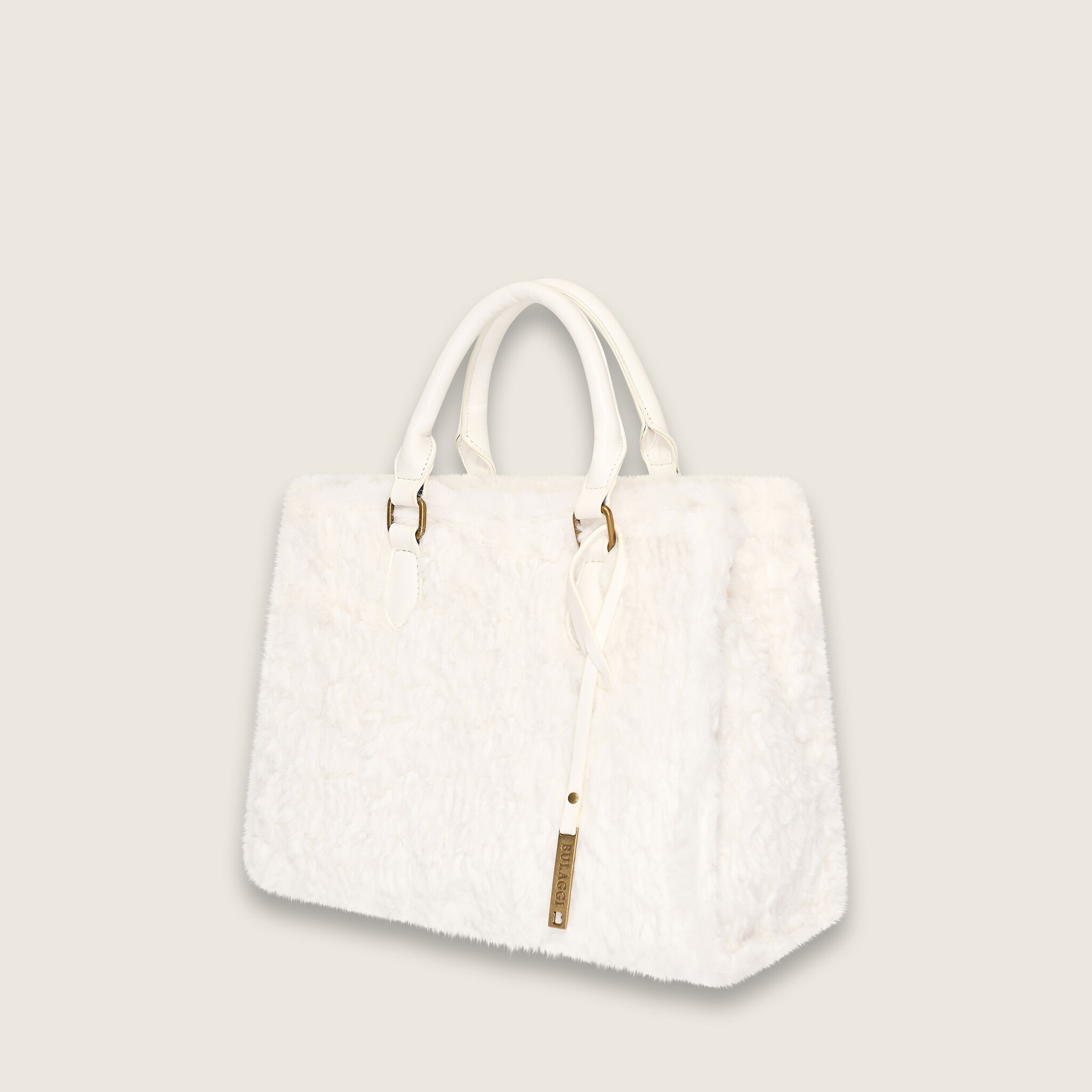 Deze fluffy creme kleurige Faux fur shopper , is een prachtige aanvulling op je garderobe. Deze handtas heeft twee handvatten en draagt zeer comfortabel in de hand. Dankzij de extra meegeleverde lange (verstelbare) en afneembare schouderriem, kan de tas op verschillende manieren worden gedragen. Aan de binnenkant heeft deze tas twee binnenvakjes, waarvan één met een rits.De tas kan worden afgesloten middels een rits. De metaalkleur heet 'antique brush' en heeft een messing kleur, als gepoetst goud. De afmetingen (breedte / hoogte / diepte) van deze tas zijn 29,5x21x11