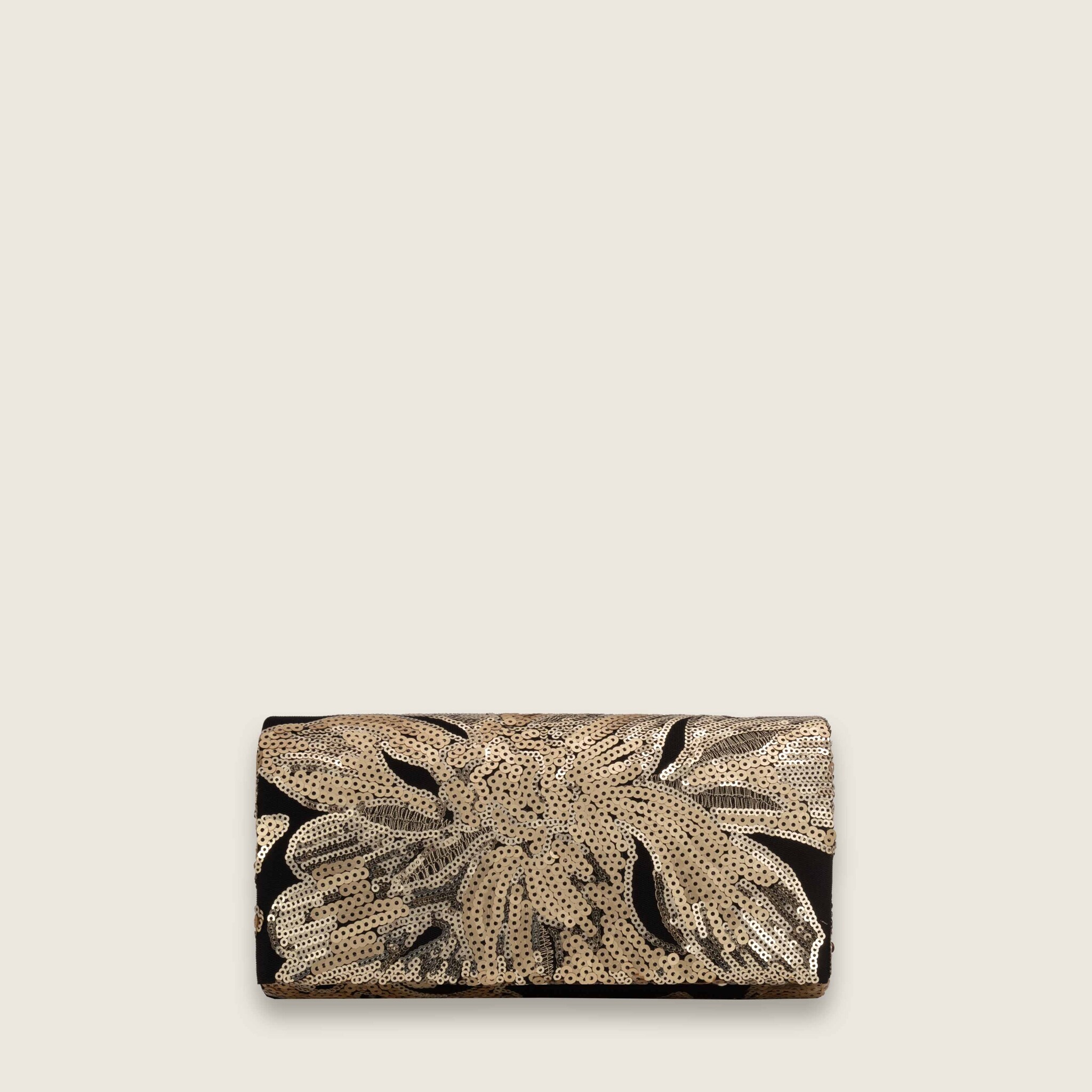 Deze chique Gouden Flower envelop, is een absolute must-have voor een avondje uit. Dit tasje komt zonder handvat en kan in de hand gedragen worden. Bij deze clutch ontvang je een afneembare schouderketting. Aan de binnenkant heeft deze tas een hoofdcompartiment met één binnenvakje. De tas sluit met een overslag en een drukknop. De metaalkleur is goudkleurig. De afmetingen (breedte / hoogte / diepte) van deze tas zijn 22x12x6