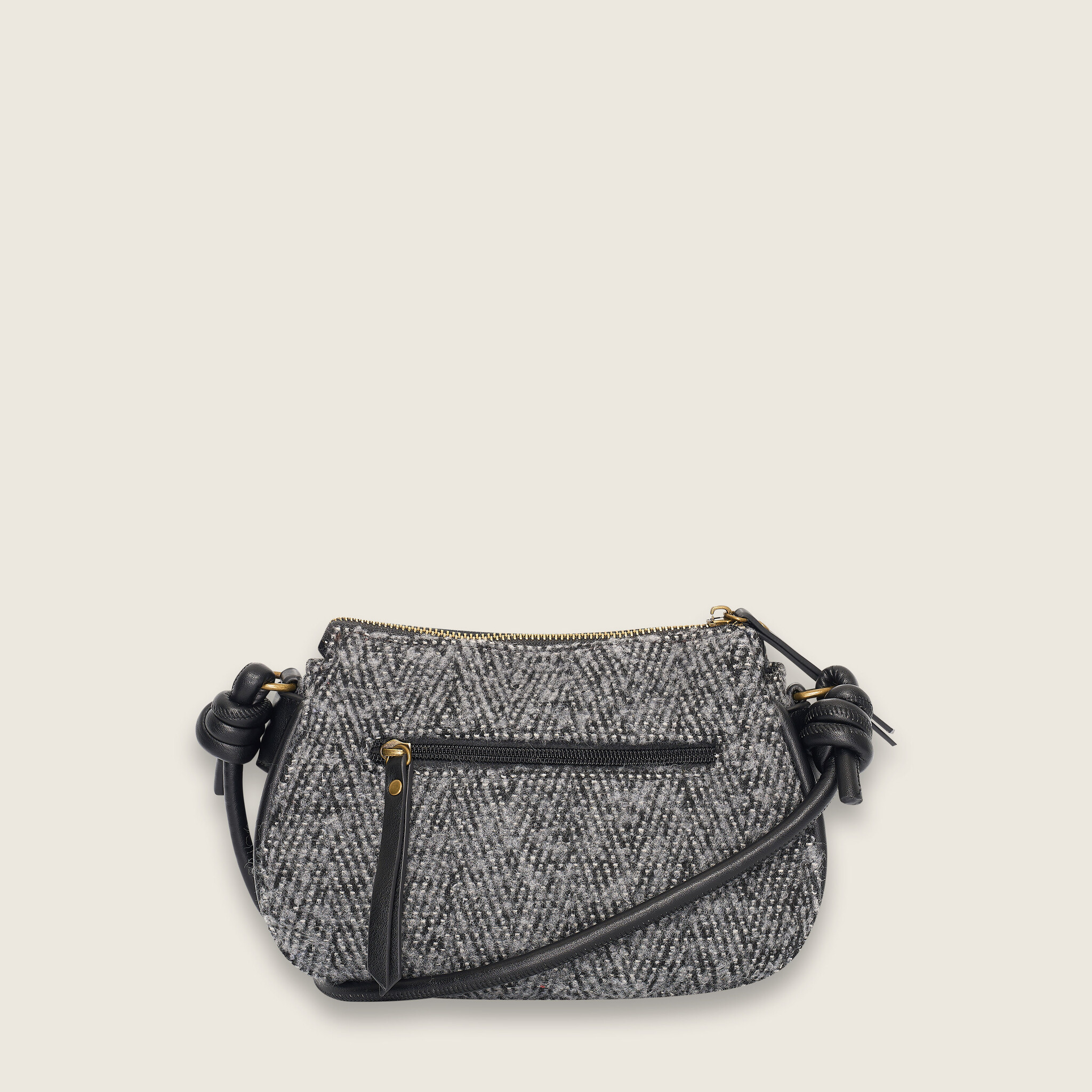 Deze moderne retro zwarte Herringbone crossover , is een stijlvolle tas met een te gekke print. De crossbody tas heeft een niet verstelbare schouderketting. Aan de binnenkant heeft dit tasje twee compartimenten. Aan de achterzijde van deze tas bevindt zich een ritsvak. De tas kan worden afgesloten middels een rits. De metaalkleur heet 'antique brush' en heeft een messing kleur, als gepoetst goud. De afmetingen (breedte / hoogte / diepte) van deze tas zijn 25x16,5x7