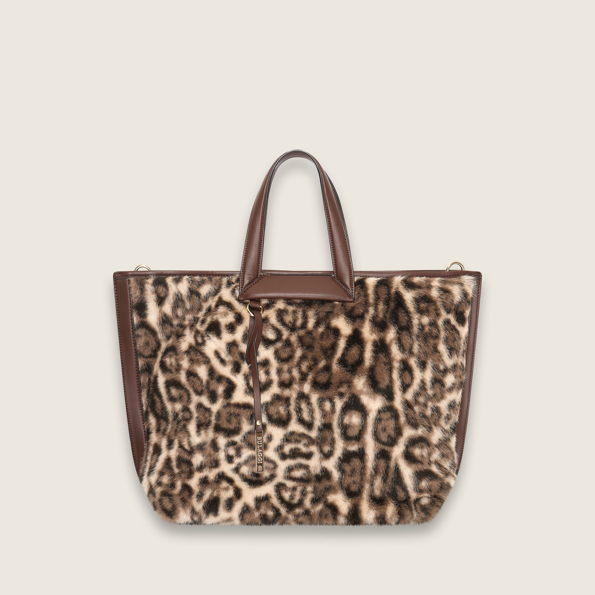 Deze fluffy creme kleurige Leo fur shopper , is een tijdloze tas die voor veel verschillende gelegenheden te gebruiken is. Deze shopper heeft dubbele handvatten die je prettig in de hand draagt. Door de bijgeleverde schouderband is deze tas gemakkelijk op diverse manieren te dragen. Aan de binnenkant heeft deze tas een hoofdcompartiment met twee binnenvakjes, waarvan één met rits. Aan de achterzijde van deze tas bevindt zich een ritsvak. De tas kan worden afgesloten middels een rits. De metaalkleur is goudkleurig. De afmetingen (breedte / hoogte / diepte) van deze tas zijn 33x30x13